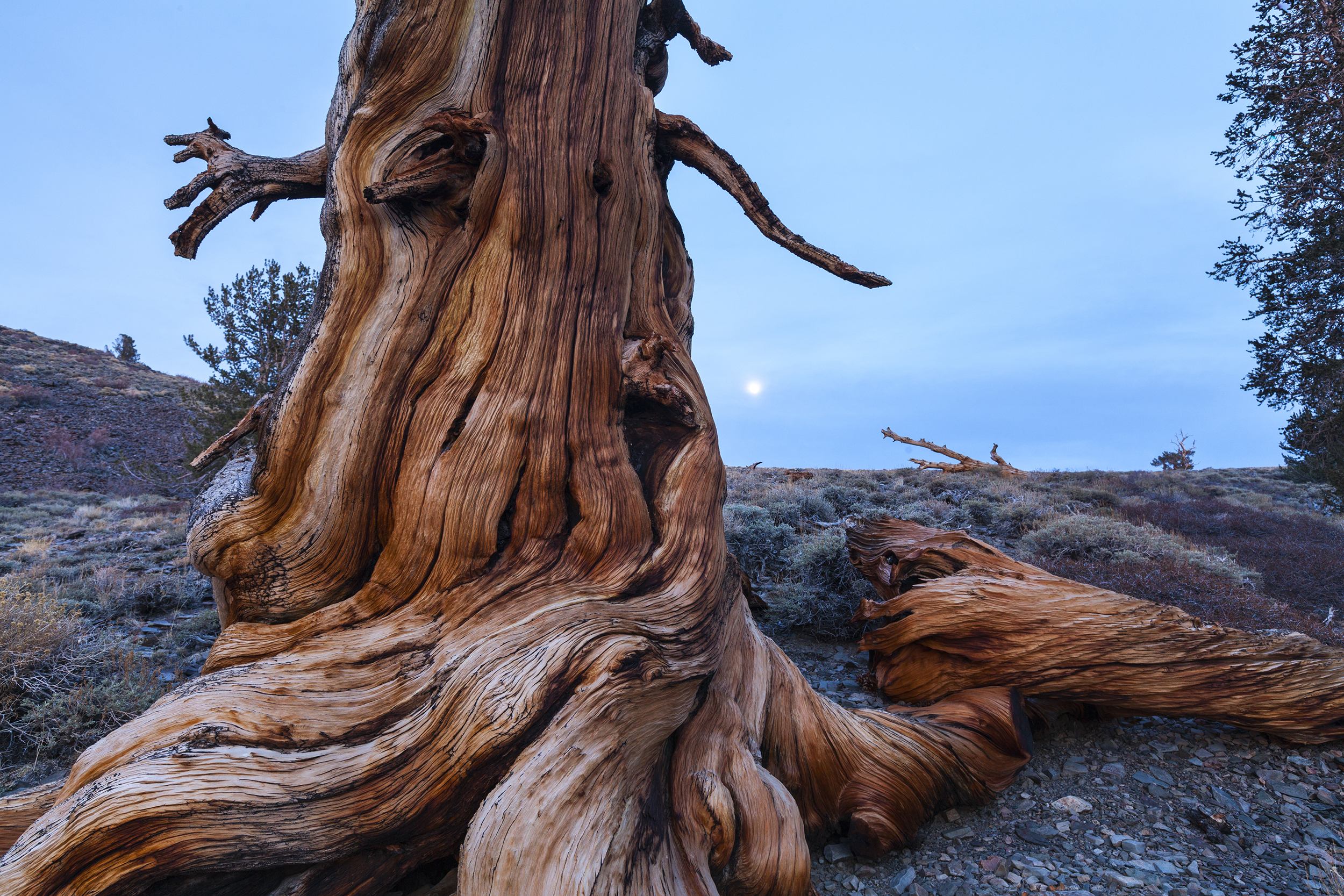 The fiercely durable wood of bristlecone pines erodes like stone against the elements.