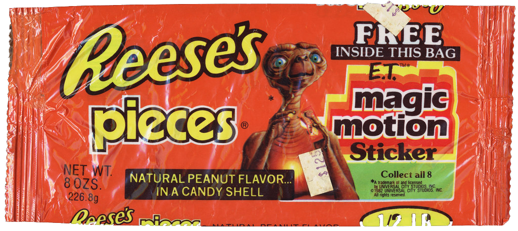 A 1980s Reese’s Pieces wrapper featured E.T.