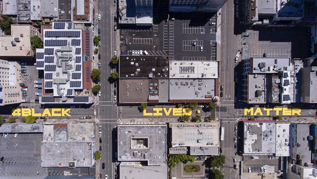 Following the example of Washington, D.C., three city blocks in downtown Oakland were painted with giant yellow letters reading “Black Lives Matter,” pictured above. Hundreds of people, including Mayor Libby Schaaf, showed up with paintbrushes to help pull off the art project. SFGate.com | SFist