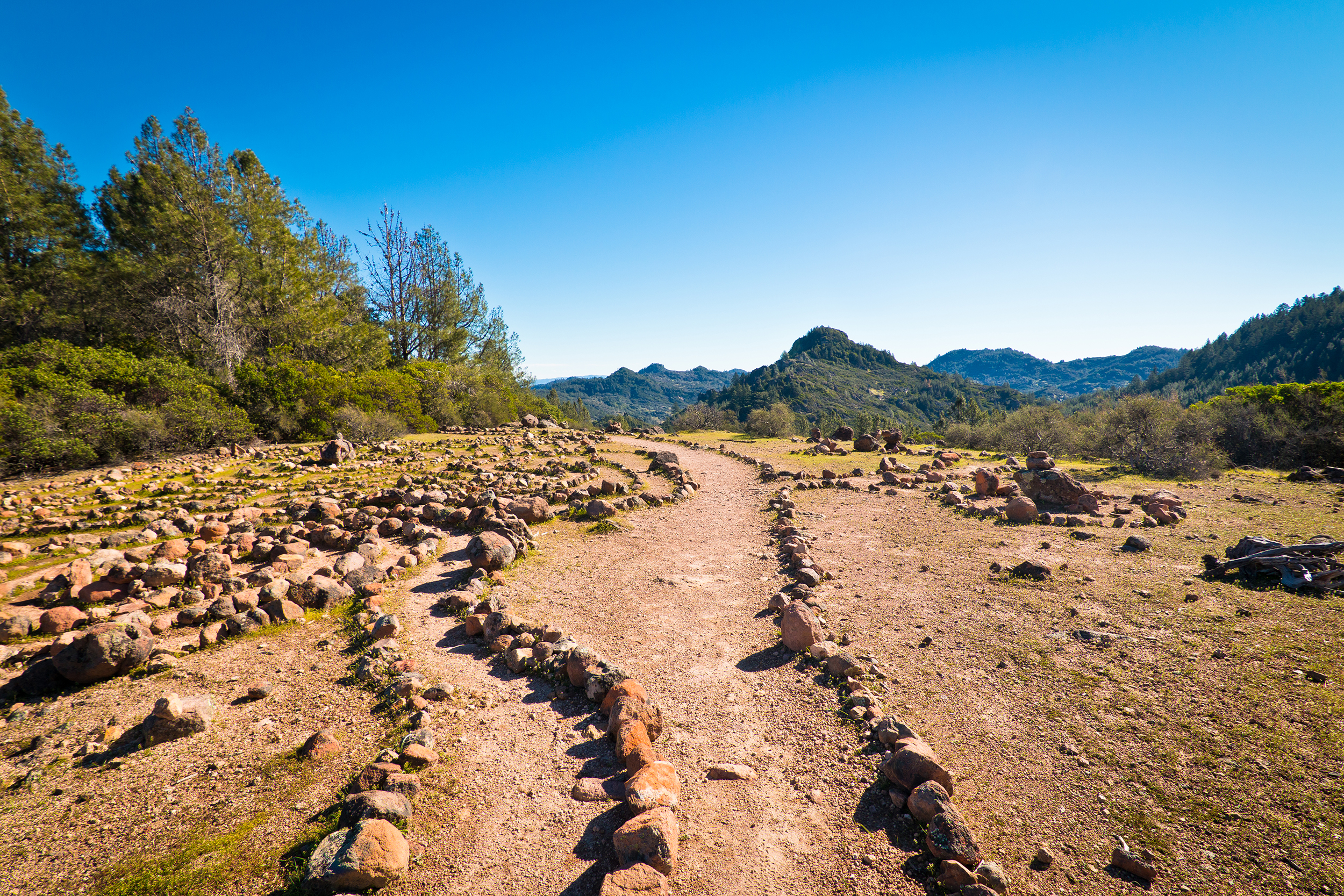 Hikers along the Palisades Trail encounter a rock labyrinth.