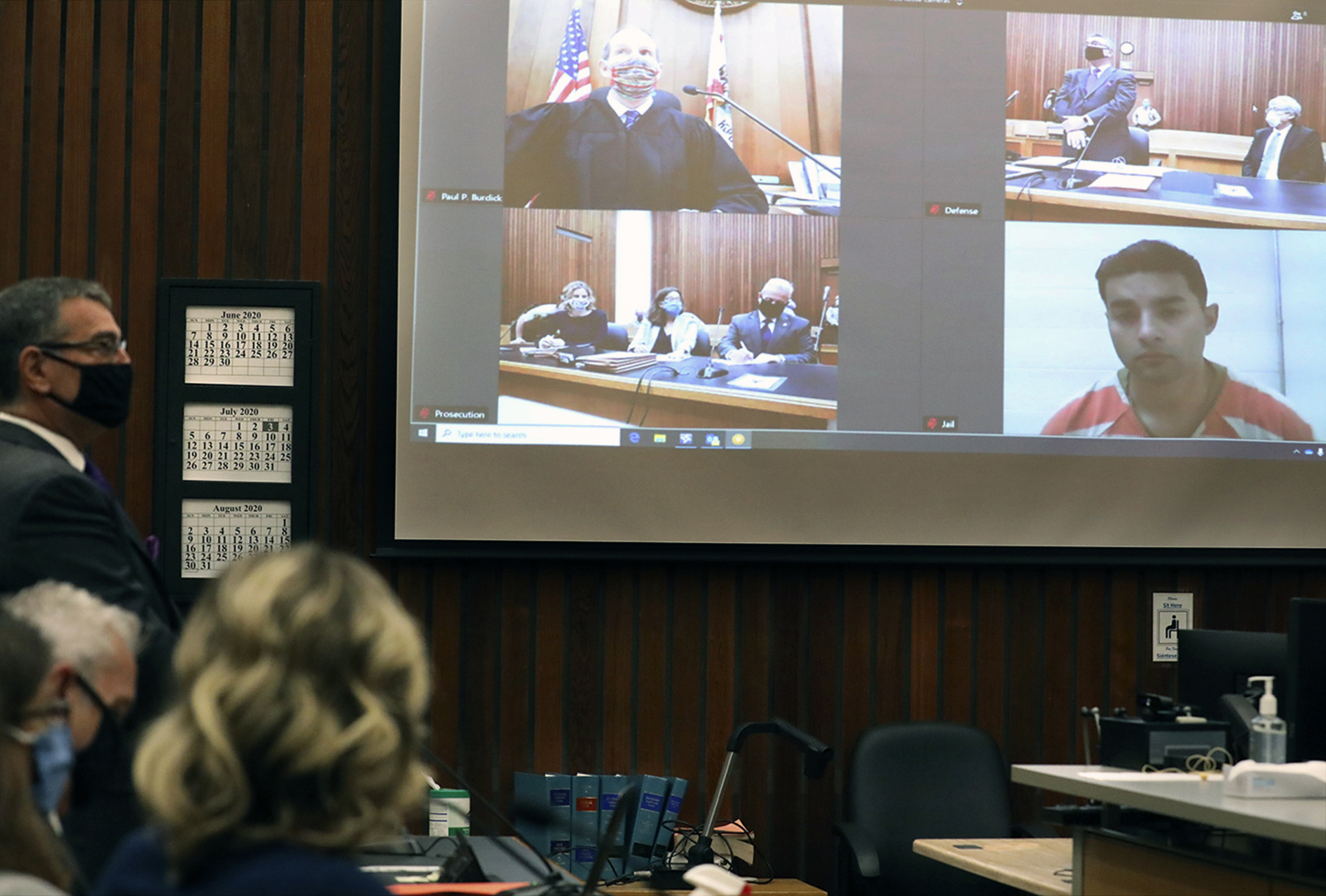 Steven Carrillo appeared by video for his arraignment in a Santa Cruz courtroom on Friday.