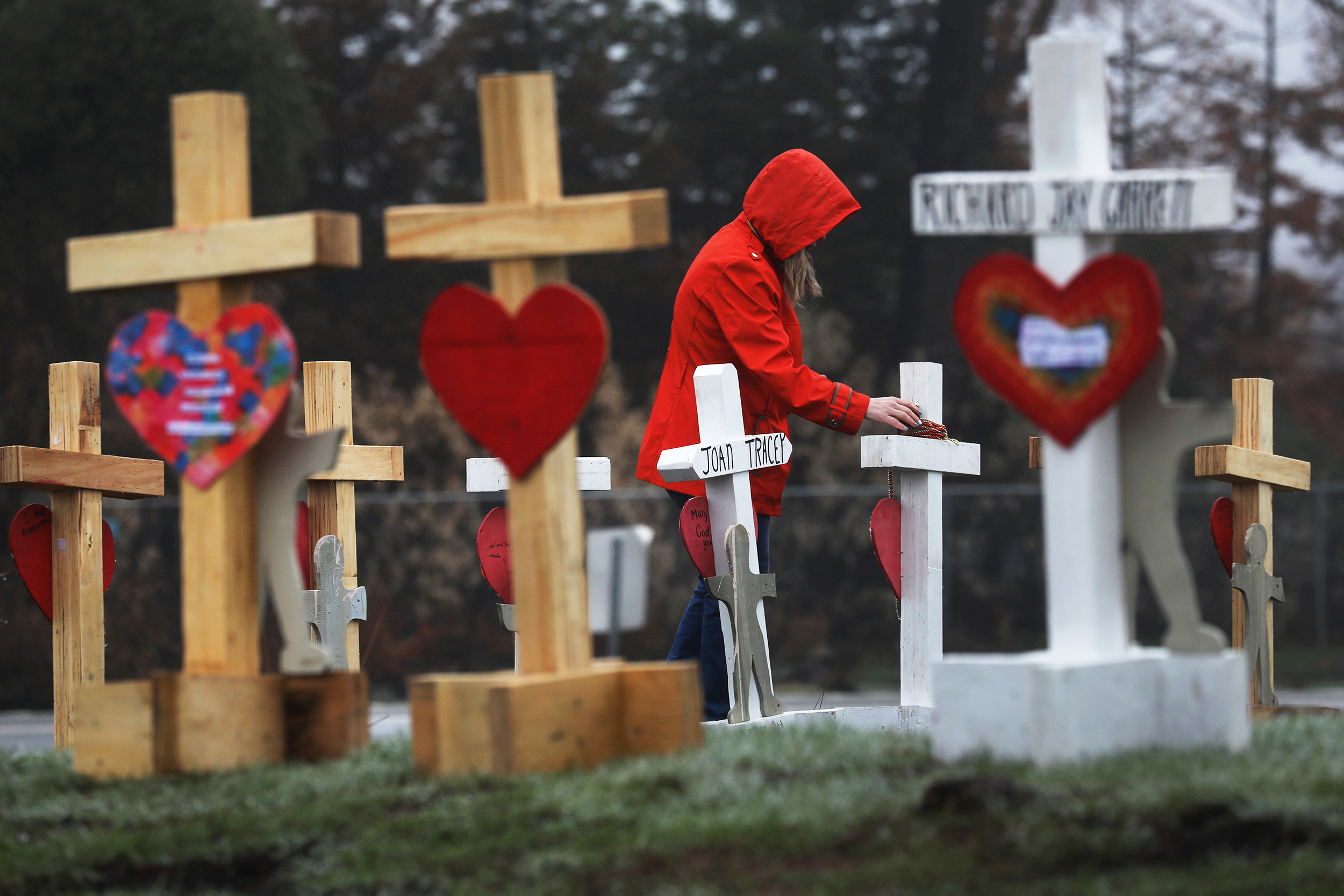 A visitor paid respects at a memorial for the victims of the Camp Fire in Paradise on Dec. 21, 2018.