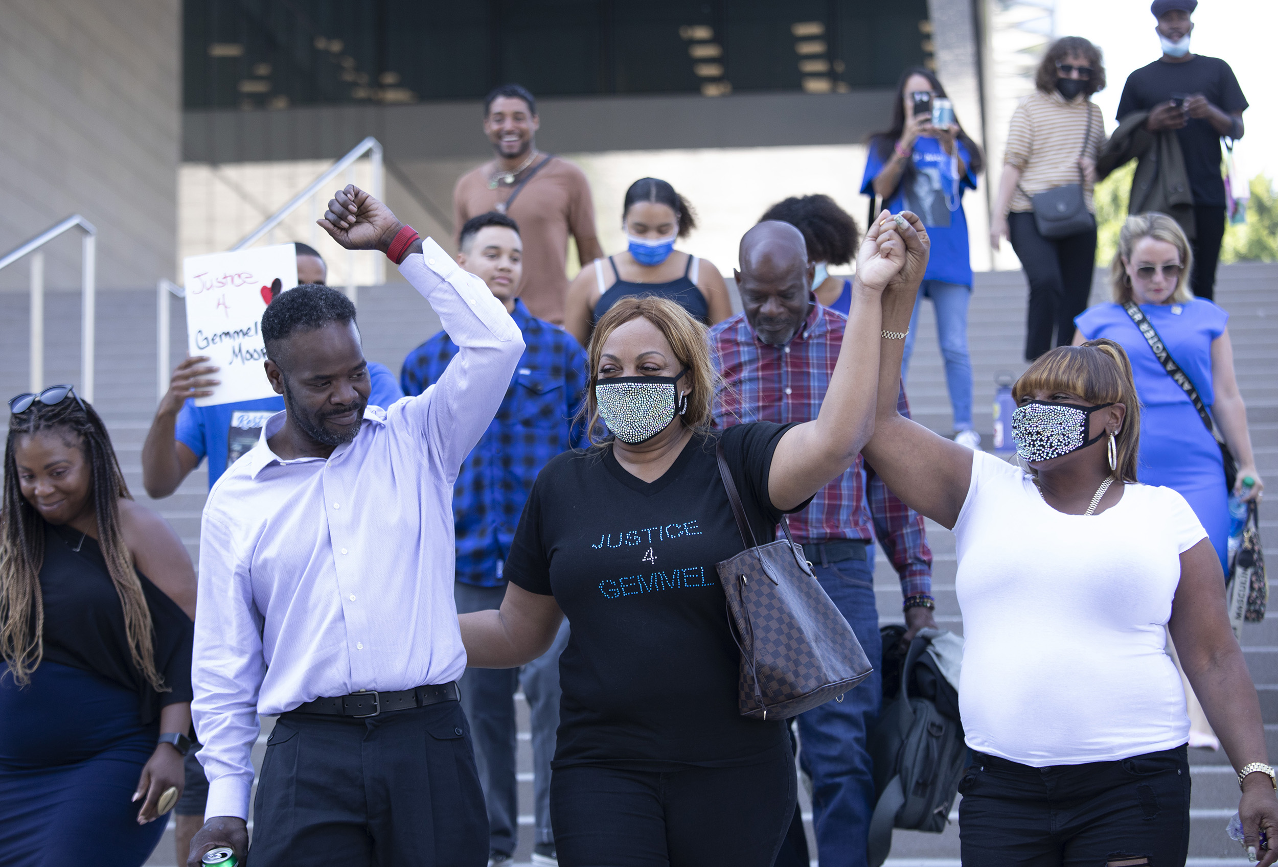 Survivors and friends and family members of victims emerged from court in Los Angeles after Ed Buck’s conviction on Tuesday.