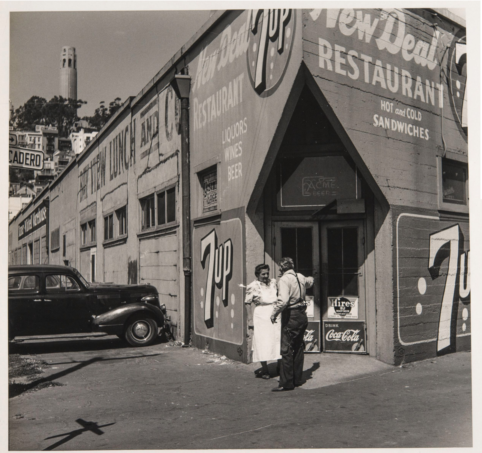 “Embarcadero North, New Deal Restaurant, Filbert Street at the Embarcadero, San Francisco,” 1949.