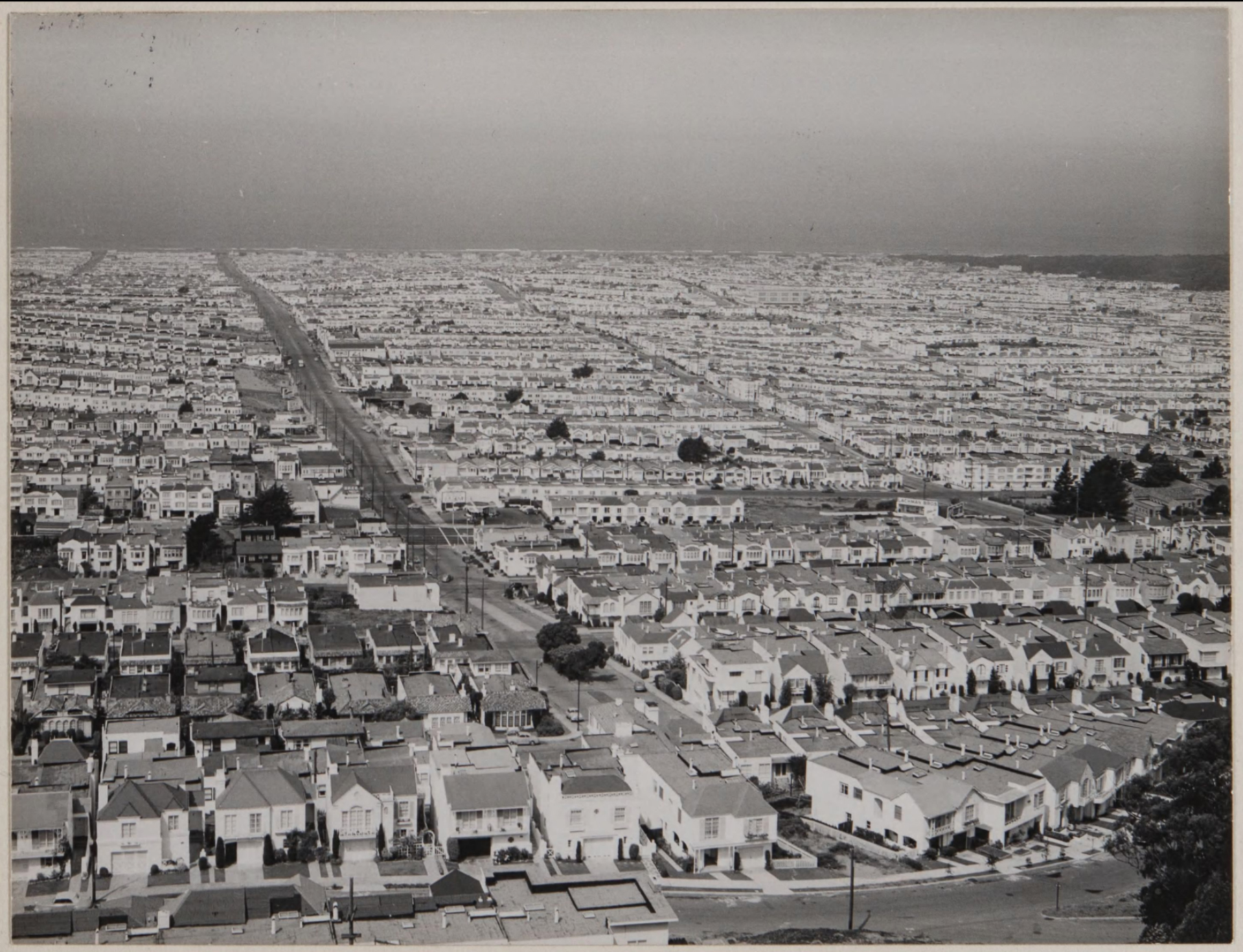 “Sunset district, looking west toward the Pacific Ocean, San Francisco,” 1949.