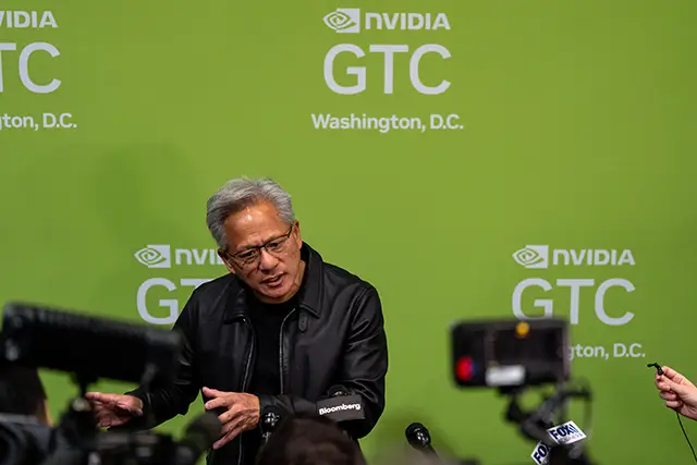 Nvidia became the first $5 trillion company on Wednesday. The milestone further cemented the Santa Clara chipmaker at the center of the global artificial intelligence boom. Its latest gains were juiced in part by praise from President Trump, with whom CEO Jensen Huang has forged an unlikely bond. During Nvidia’s developer conference in Washington on Tuesday, Huang spent nearly an hour lavishing praise on the president. “This president works like mad to help America be great and for America to win,” he said. Washington Post | Quartz