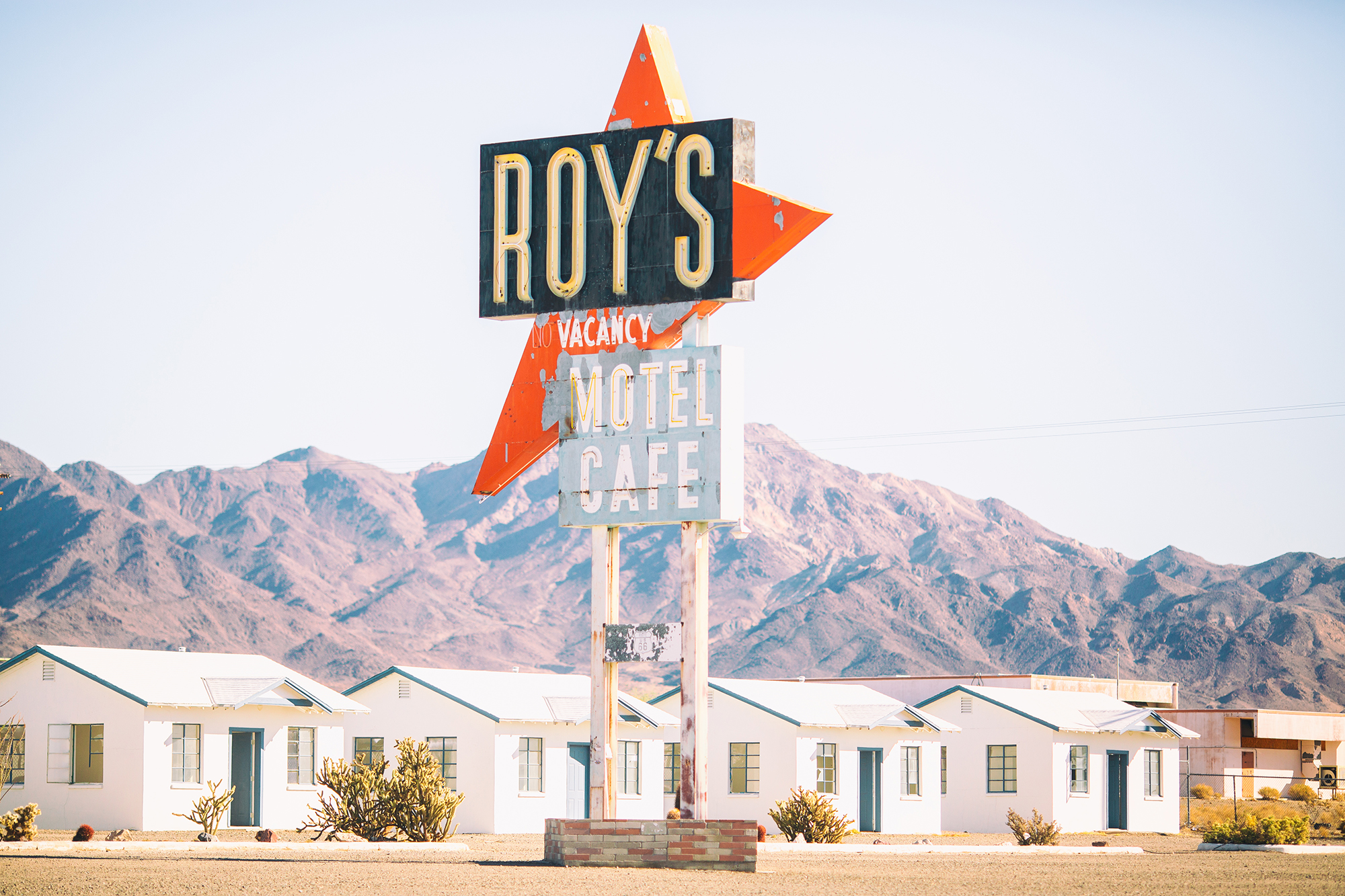 Roy’s Motel and Café is a classic example of roadside Googie architecture.