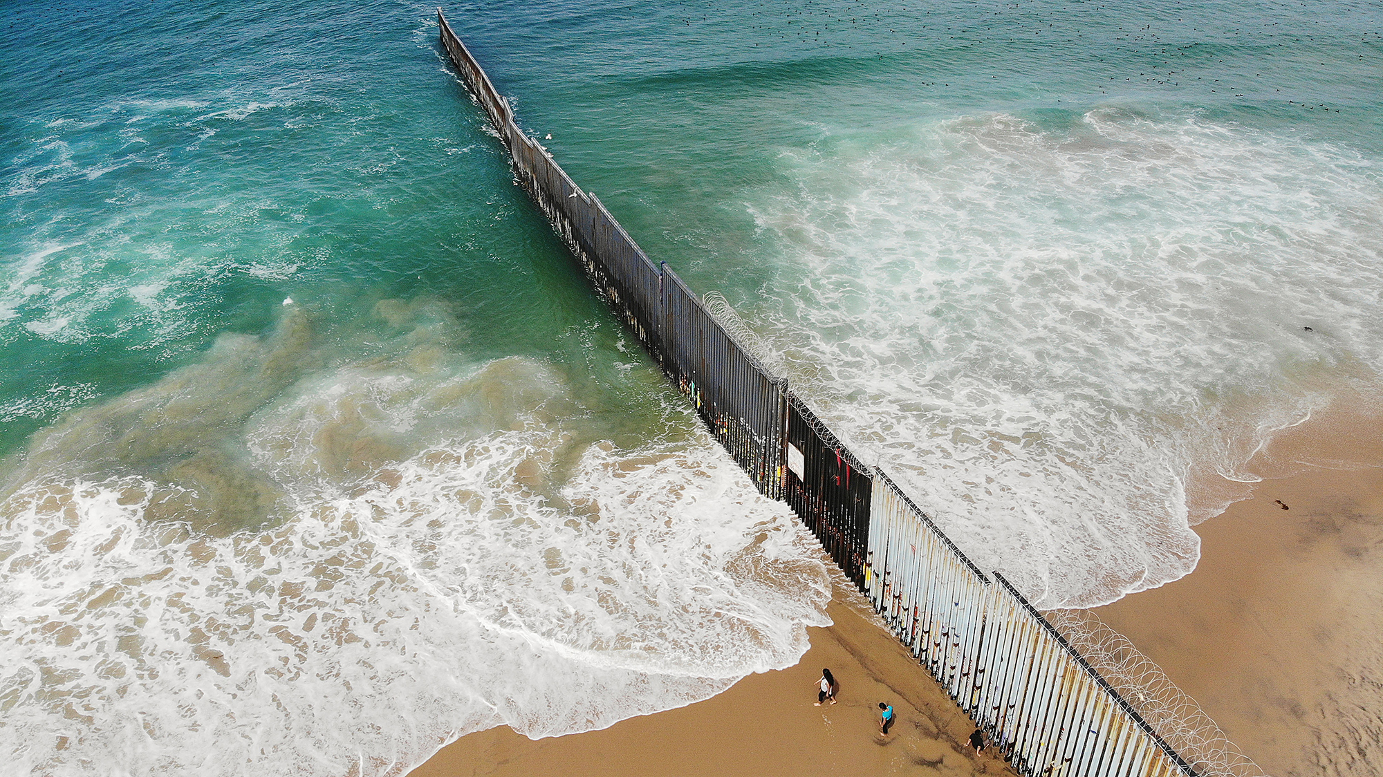 The border fence juts into the Pacific Ocean between San Diego and Tijuana.