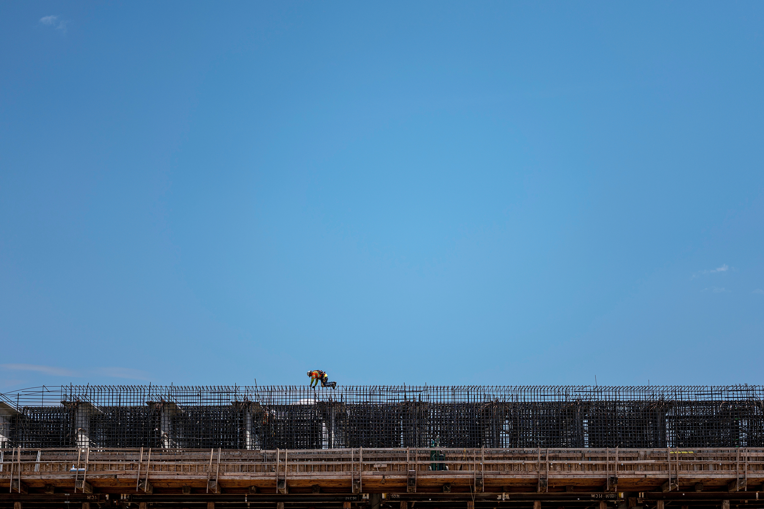 A contractor worked the bullet train in Kern County on April 19.