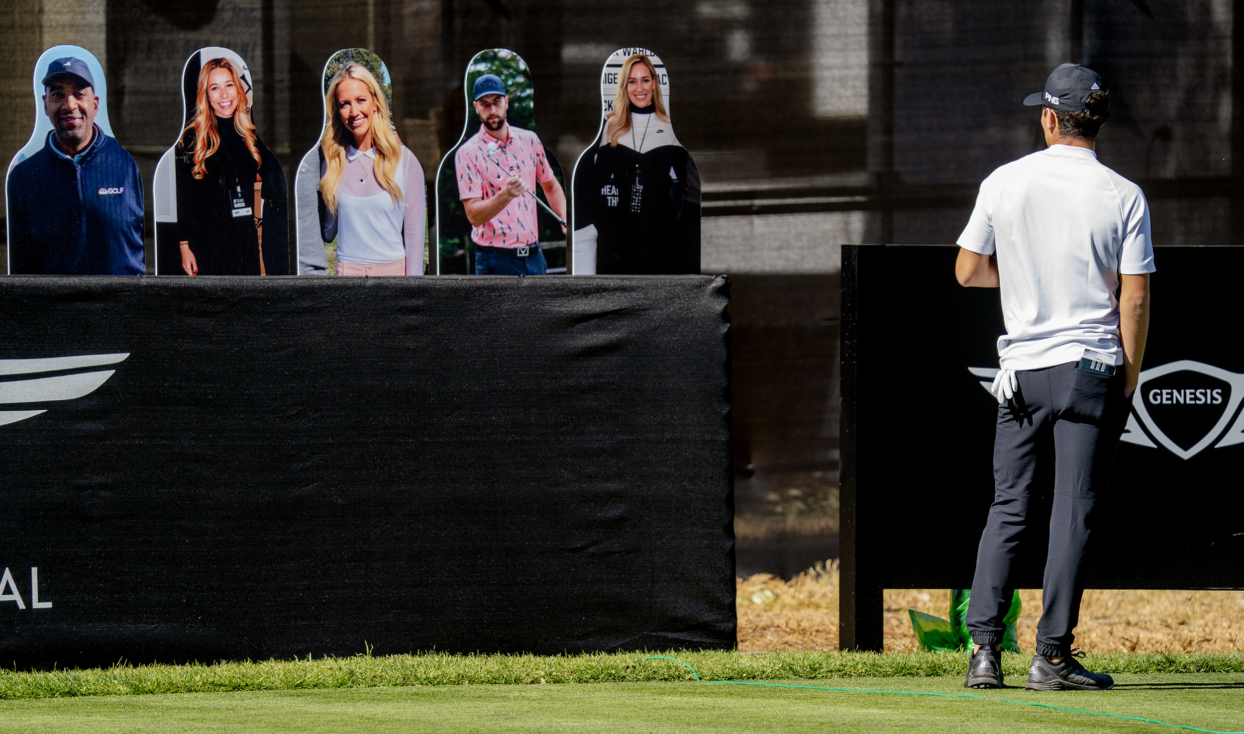 Cardboard fans hovered near Joaquin Niemann during a golf tournament in Pacific Palisades on Feb. 19.