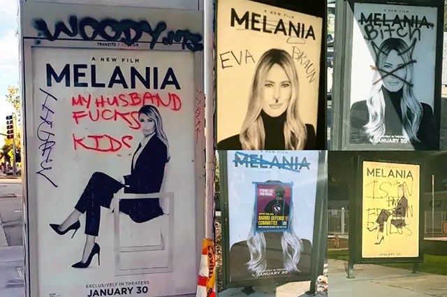 - And “Melania” posters are defaced across Los Angeles.