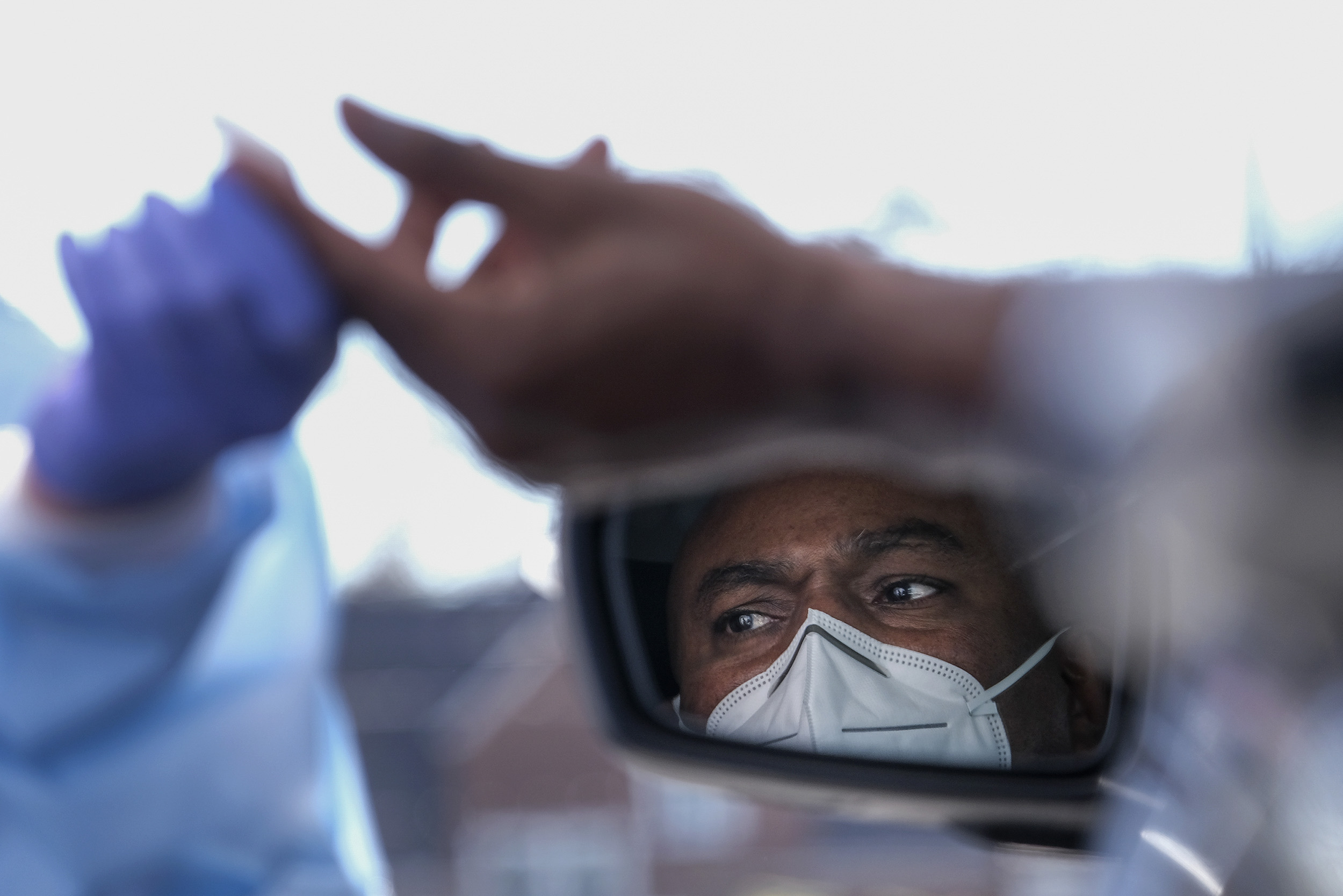 A motorist had his blood drawn for a Covid-19 test at a church in Los Angeles on Monday.