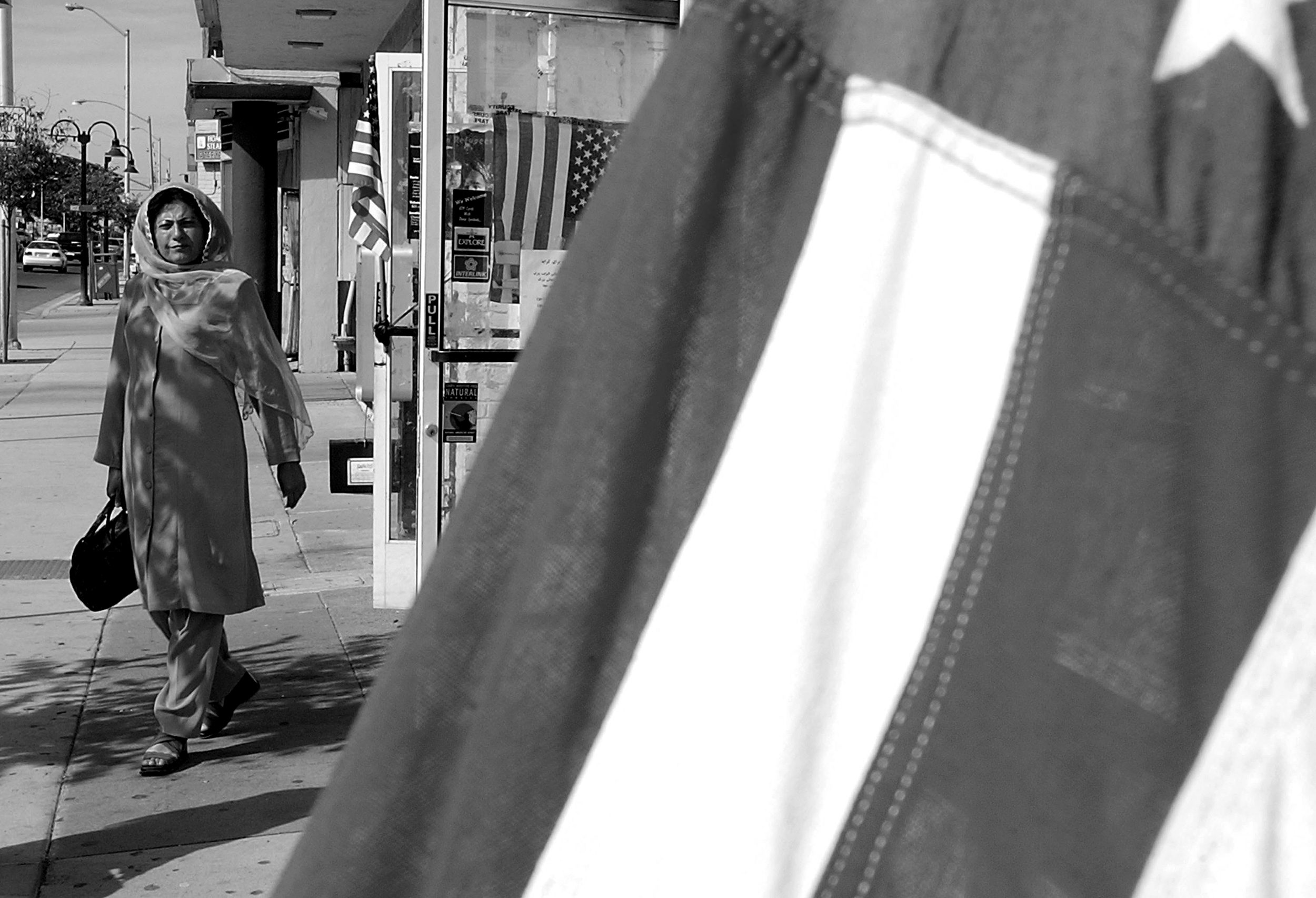 Shop owners hung American flags in Fremont’s “Little Kabul” district on Oct. 24, 2001.
