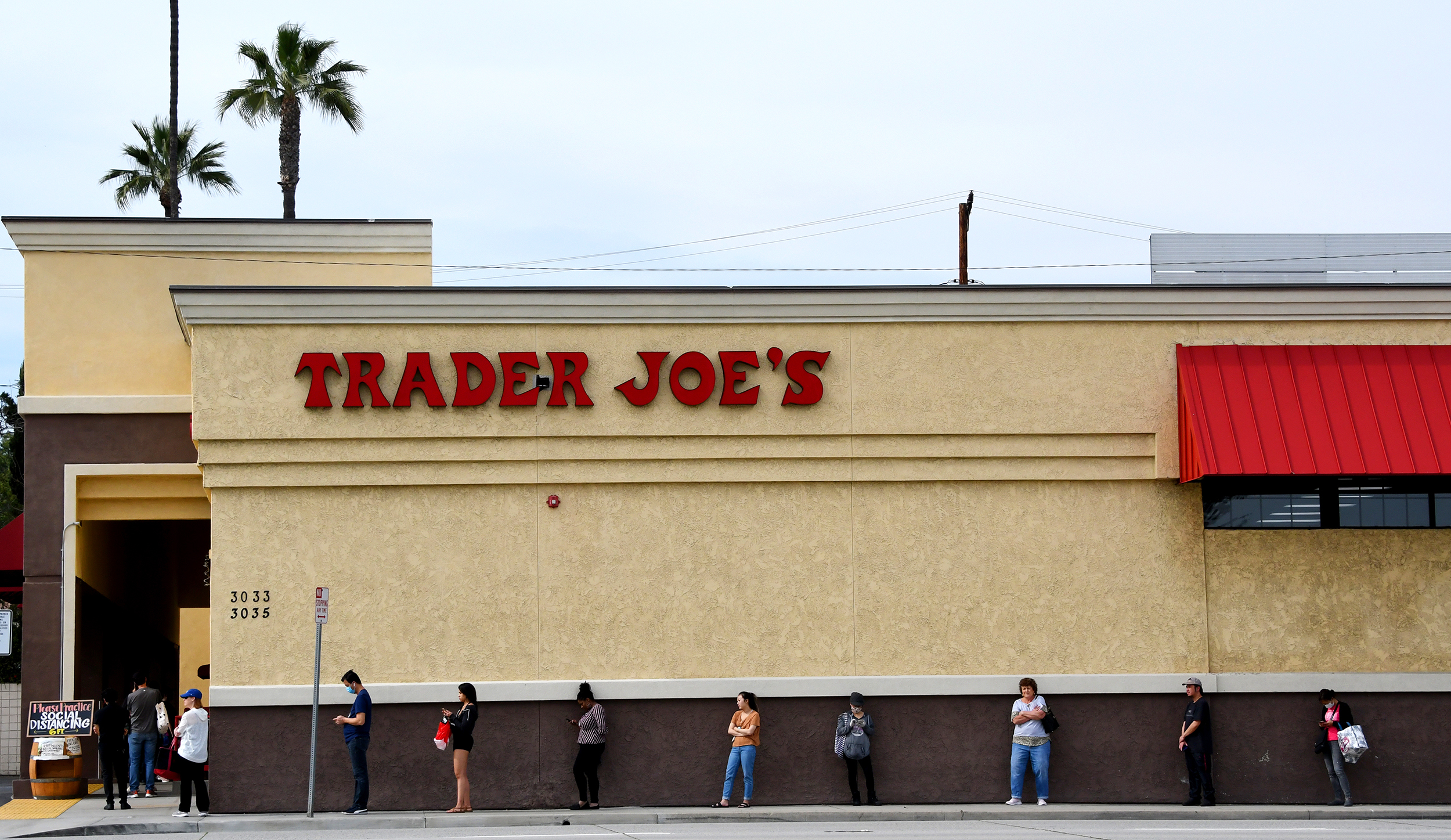 Customers waited outside a Trader Joe’s in Pasadena on Tuesday.