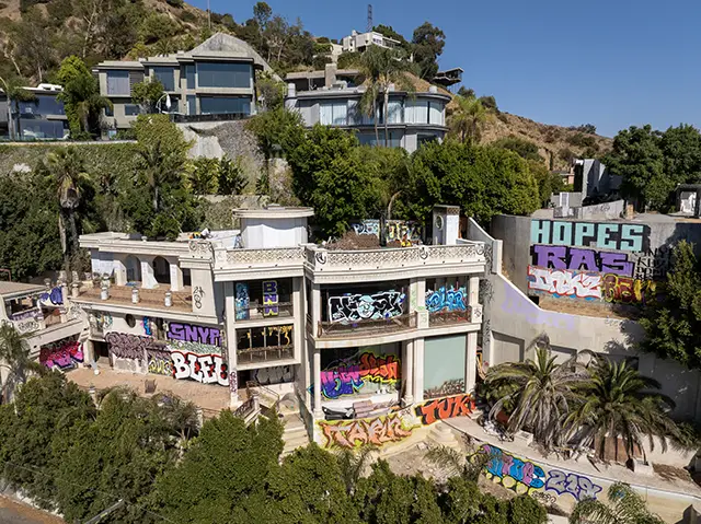 Three mansions on Los Angeles’ tony Westside have been covered in graffiti after being abandoned by their owners. Two of the homes, located in the Hollywood Hills, belong to John Powers Middleton, a film producer and the son of a Philadelphia Phillies co-owner. The third home, in Bel Air, is partly owned by a half-brother of Osama bin Laden. A broker said it has been vacant for more than two decades. “It’s just insane,” one neighbor told the L.A. Times. “There was once a gorgeous home there. I mean, who does that?” CBS News | L.A. Times