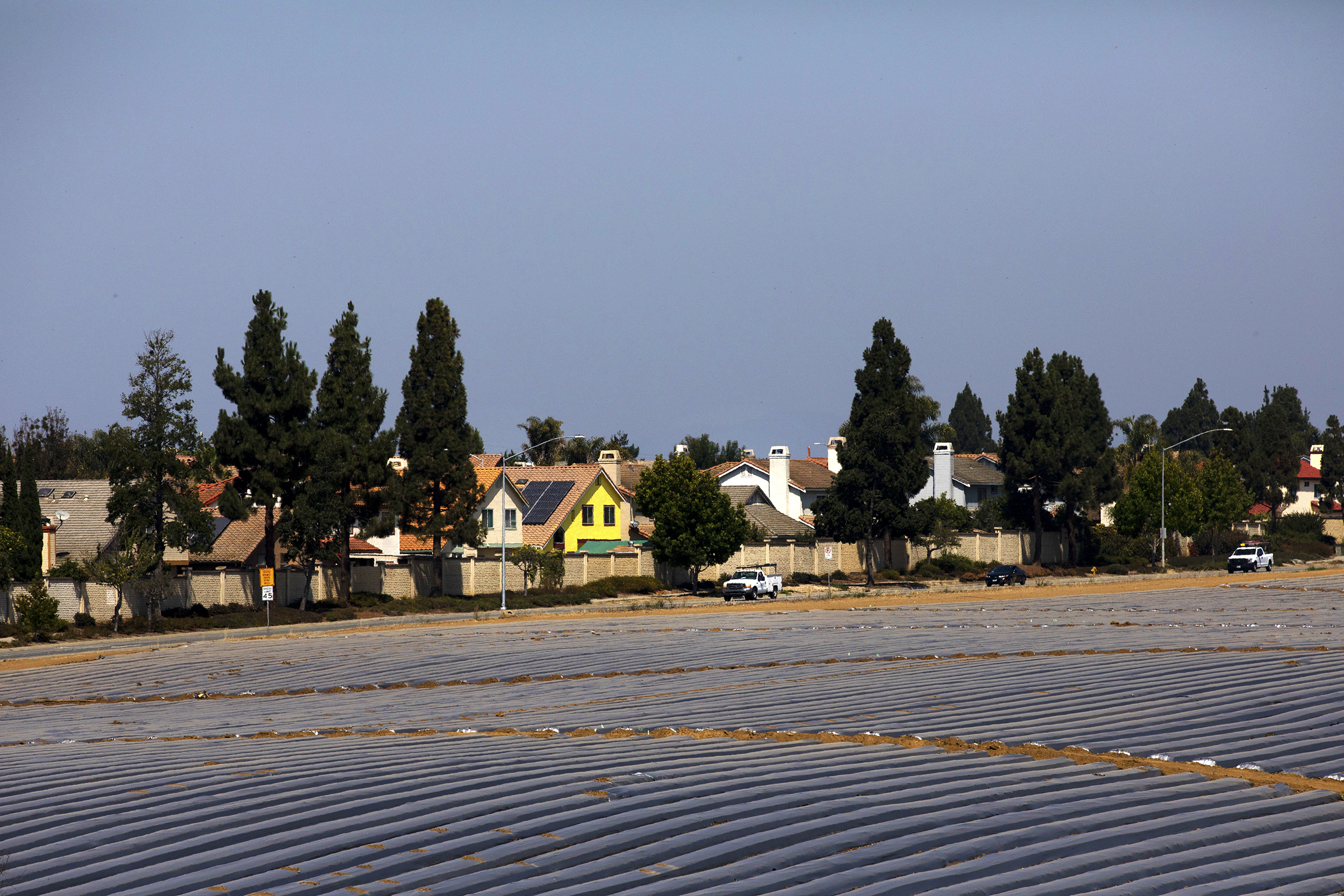 Farmlands and residential areas in Salinas, where housing costs have ballooned.