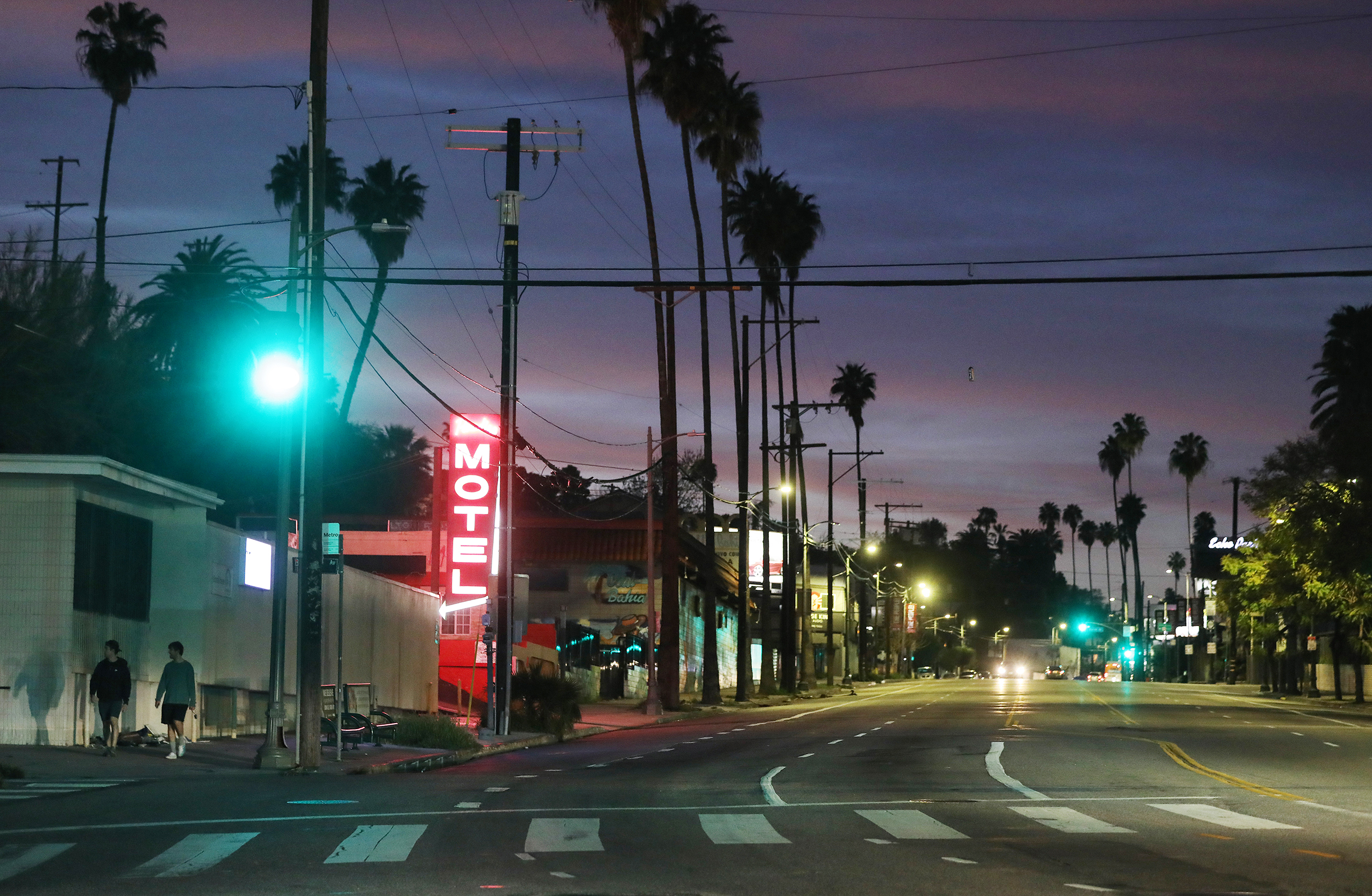 A quiet Sunset Boulevard in Los Angeles on Tuesday.
