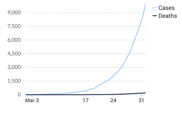 As of Tuesday, the number of confirmed infections per capita in New York City was 15 times that of the Bay Area. Compared to Boston, the Bay Area has about a third of the cases per capita. Testing data doesn’t give the full picture, but it’s become clear that the disease is spreading at different speeds, and analyses suggest mandatory social distancing is working — the earlier the better. Washington Post