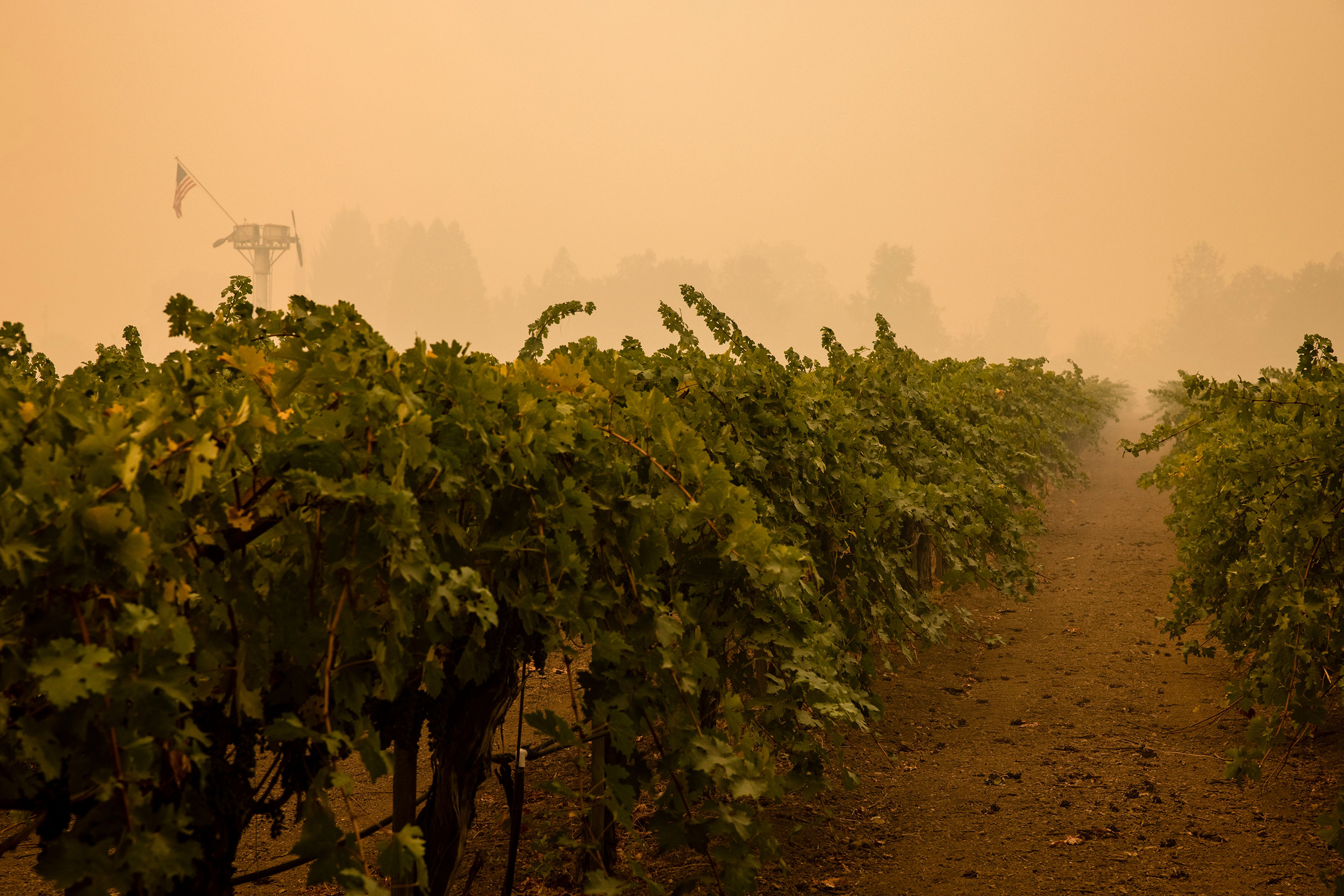 Smoke hung over a vineyard outside of Calistoga in Napa Valley on Sept. 30, 2020.