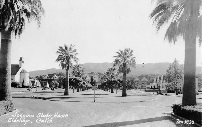 An old postcard of Sonoma State Home, where patients were sterilized.