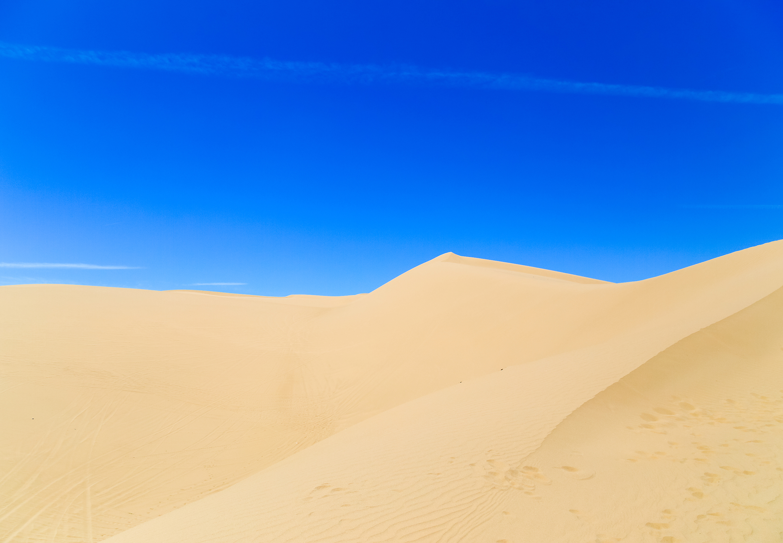 Nope, Imperial County. America’s largest dune system, the stark sandscapes of Algodones Dunes are Southern California’s answer to the extravagant rainforests of the North Coast. The setting is severe: No water, no facilities, no trails, no recognizable points of interest, and little life (even if you include the sand-pit monster filmed at the dunes for “Return of the Jedi”). Instead: towering piles of wind-sculpted sand, deep blue sky, and the exquisite sort of beauty that comes with simplicity.