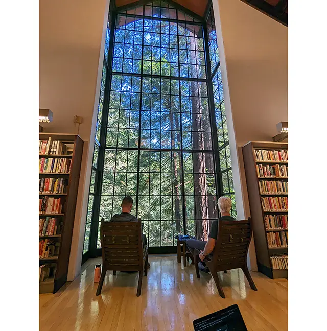 One of California’s prettiest libraries is nestled in a redwood grove 10 miles north of San Francisco. The architects of Mill Valley Public Library, built in 1966, created glass walls to bring the outdoors in, while the interior was furnished with a wood-burning fireplace and bespoke walnut desks and chairs. Even as library visitation has fallen nationally in the last decade, Mill Valley has been an exception, the S.F. Chronicle reported over the summer. It’s among the few Bay Area libraries to fully recover its pre-pandemic numbers.