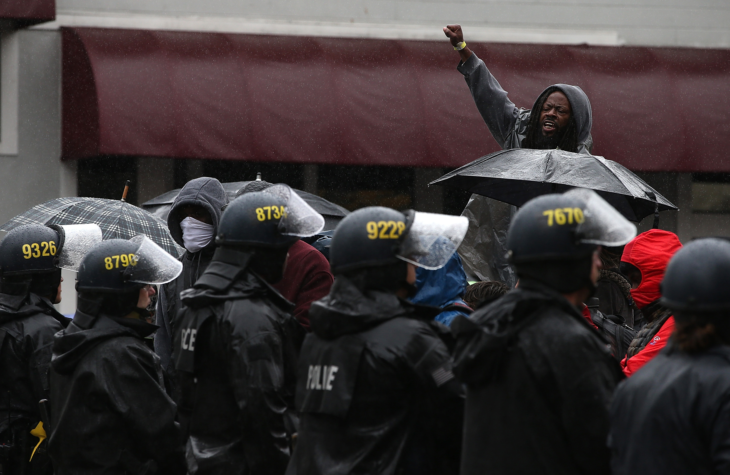Police officers faced off with people protesting police shootings in Oakland in 2014.