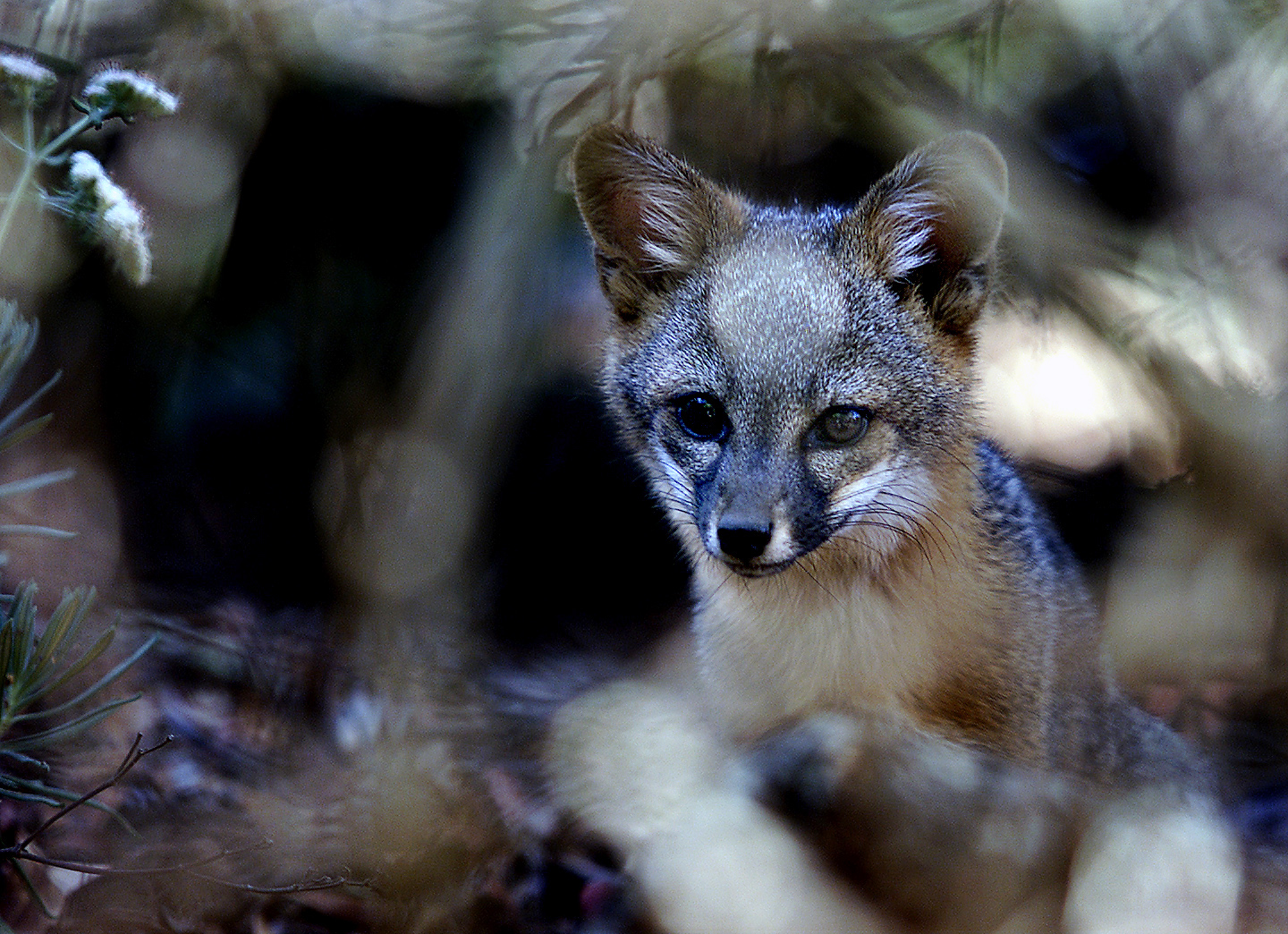 Island foxes are curious and playful with pointed noses and rust-colored fur.