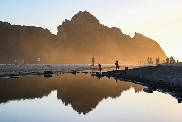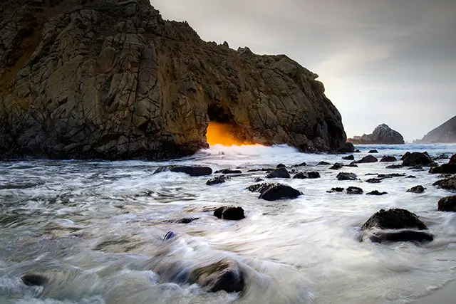 Around this time of year, crowds gather on Pfeiffer Beach in Big Sur to catch the rays of the low angling sun burst through Keyhole Arch, pictured above. But the beach is a marvel year-round, light show or no. The sand shimmers in pinks and purples, caused by the erosion of manganese garnet in the headlands. Boulders smoothed by crashing waves resemble giant bowling balls. And Monterey cypresses, gnarled by centuries of salty wind, cling stubbornly to the hillsides. See a guide to Pfeiffer Beach and, below, a photo tour.