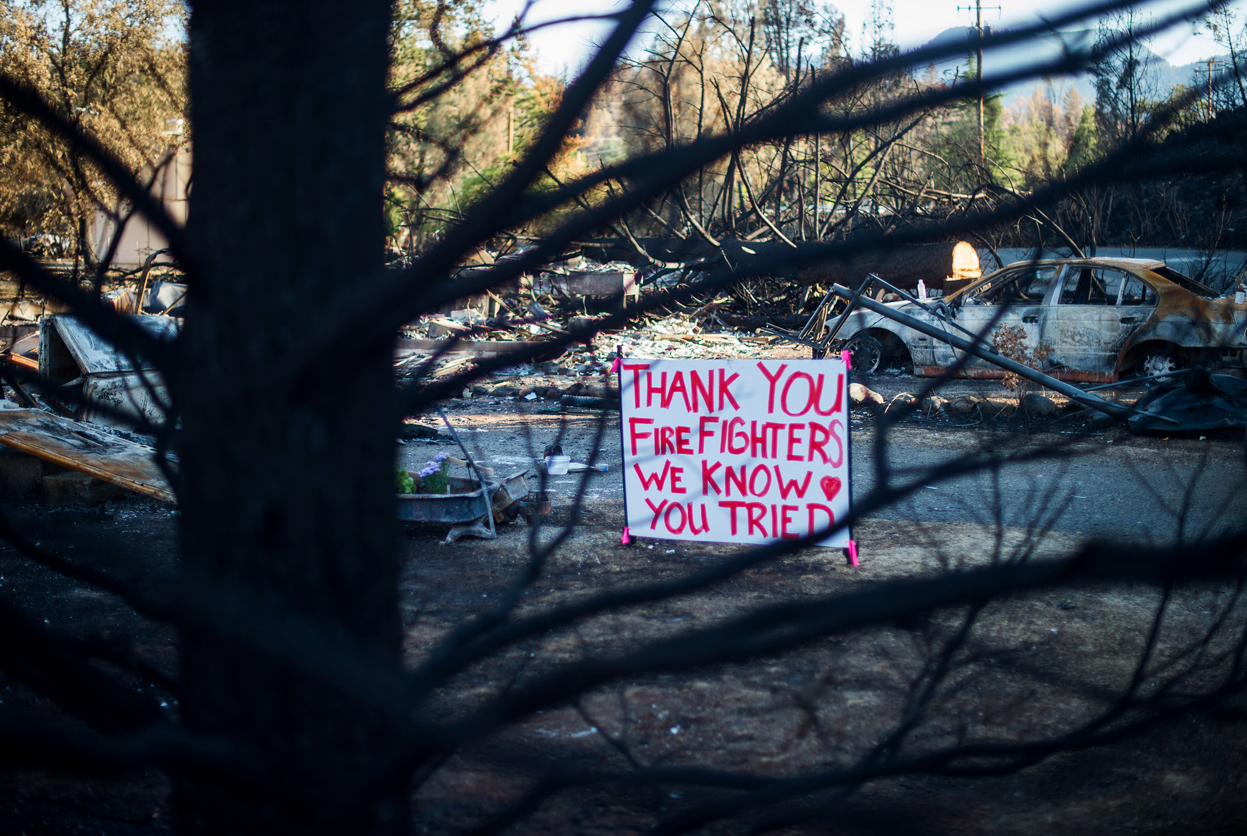 A sign thanked firefighters after a 2015 blaze in Middletown, near the site of a proposed development.