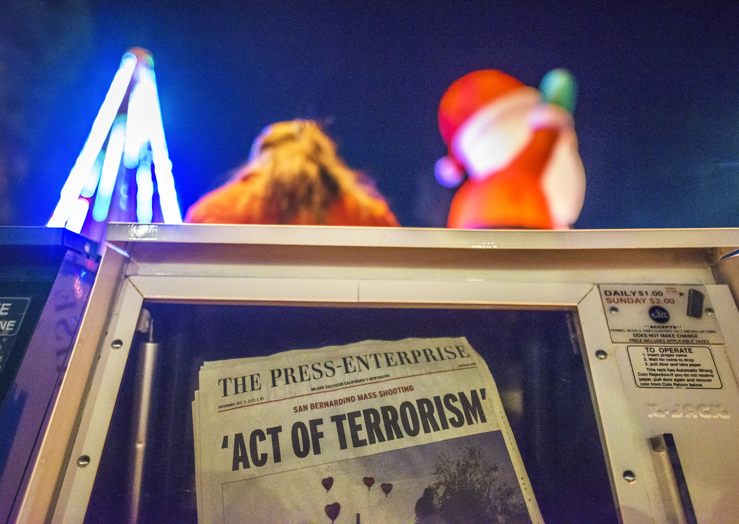 An issue of the Press-Enterprise carried news of a mass shooting in 2015.