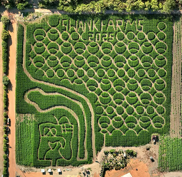 The Los Rios Rancho maze in Oak Glen resembles a circuit board.