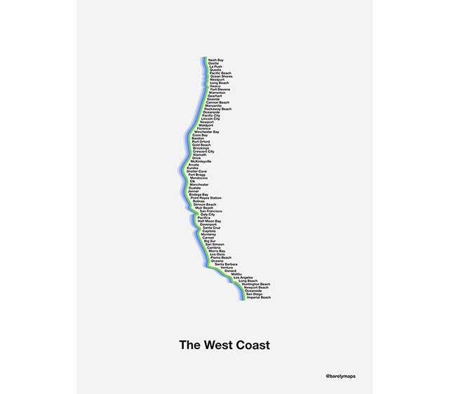 The artist Peter Gorman uses geographical data to create minimalist maps. A few inspired by California:
