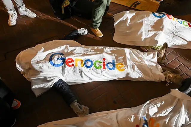 - Protesters staged a “die-in” outside Google’s San Francisco offices on Thursday, demanding the company end its software contract with Israel. The demonstrators draped themselves in sheets emblazoned with a mock version of Google’s logo that spelled “Genocide.” S.F. Chronicle | KQED