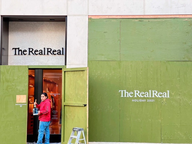 The RealReal boarded up its windows in San Francisco’s Union Square on Nov. 25.