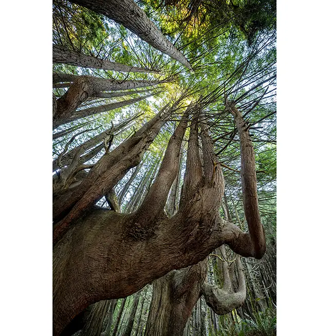 There’s a remote grove of redwoods 50 miles north of Mendocino where massive tree trunks branch out into candelabras of “reiterated” trunks, each big enough to be considered trees in their own right.