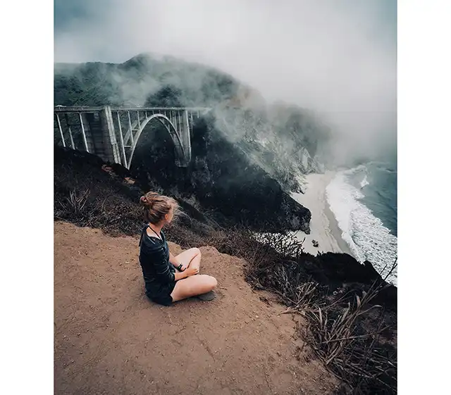 “In the past decade, visitors have descended on a few photogenic spots in Big Sur: McWay Falls, Pfeiffer Beach, and—the place that came up the most often in conversation — Bixby Bridge. … When I looked up Bixby Bridge on Instagram, I saw dozens of iterations of the same photo: women in styled hair and leggings gazing out at the sea, the arch of the bridge curving behind them. Not usually pictured: the traffic.”