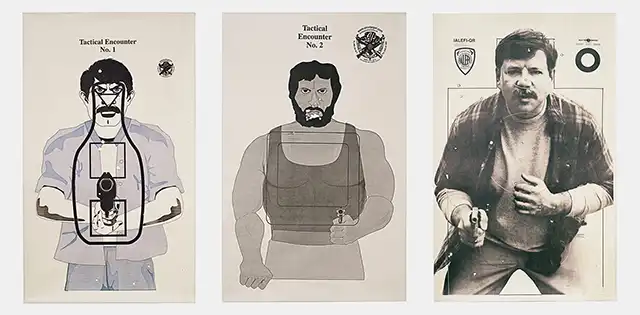 In 2016, the British photographer Jane Hilton went along with some colleagues to the LA Gun Club in downtown Los Angeles and found herself grasping an AK-47. “I was completely thrown by the whole thing,” she said. Hilton returned several times to interview the customers, but not to photograph them. Instead, she included their comments as captions alongside photographs of the target posters they chose to shoot — caricatures of Middle Eastern men, “thugs,” and kidnappers. Wallpaper | JaneHilton.com