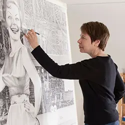 The Los Angeles-based artist Laurie Lipton shares why she’s drawn obsessively since age four, how she invented her “insane” cross-hatching technique studying Dutch Masters in Europe, and how waitressing paid the rent so she could draw. After 36 years abroad, she says she returned to Los Angeles to find America rolled back to 1955. She discusses why drawing is her drug, how stepping aside lets the work flow, and why political art struggles to find gallery walls.