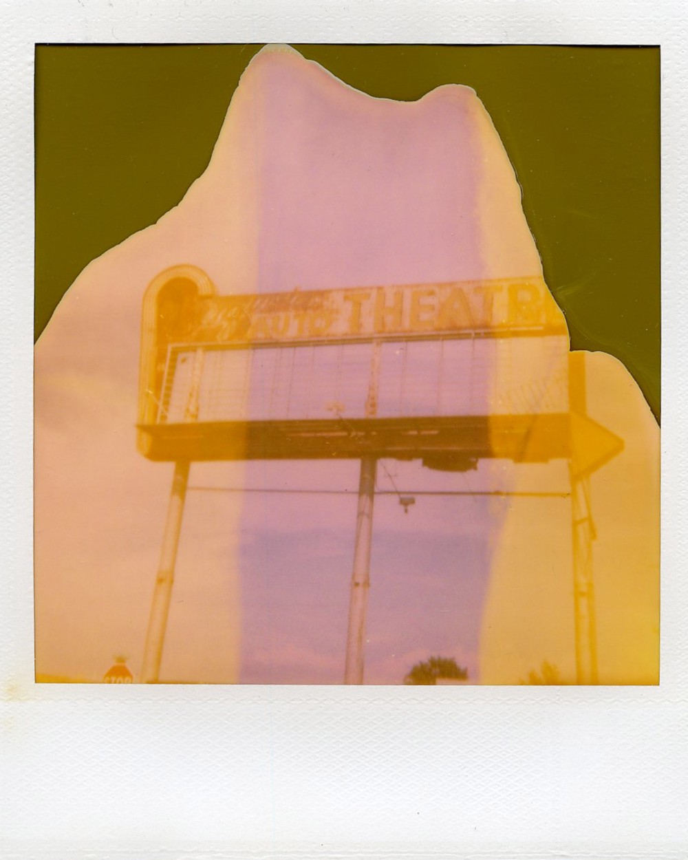 A Polaroid image of the decaying Sequoia Auto Theatre sign in Visalia.